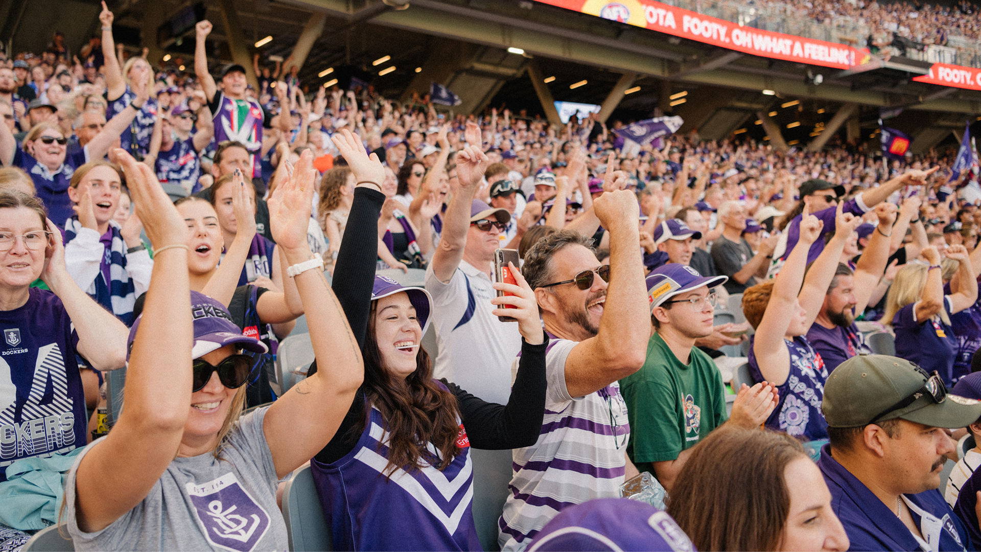 Being a member of the Fremantle Dockers is more than just a membership. It’s about being part of a club, a community and the people who make it special. It’s the smile you share with the person sitting next to you, the excitement of a goal that lifts the crowd and the sight of thousands of fans all in purple.