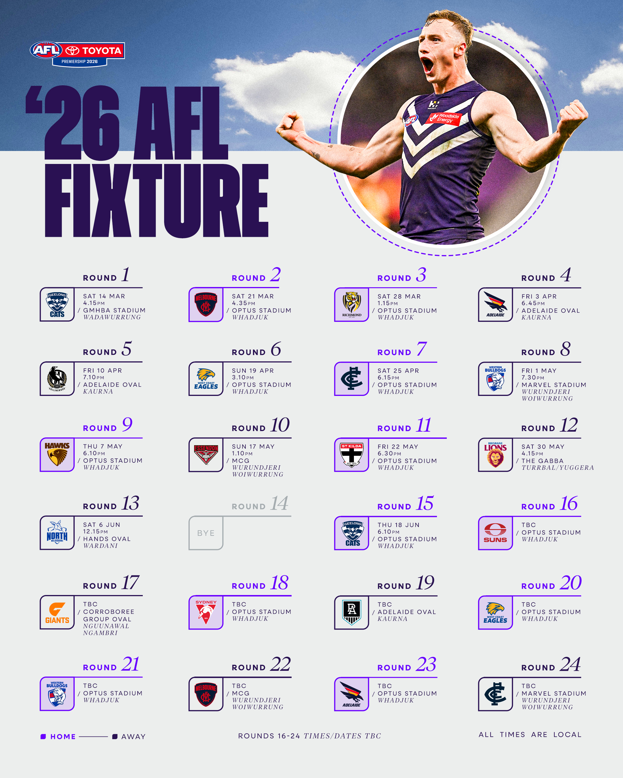 Access to three 2026 AFL Premiership Season home games at Optus Stadium*