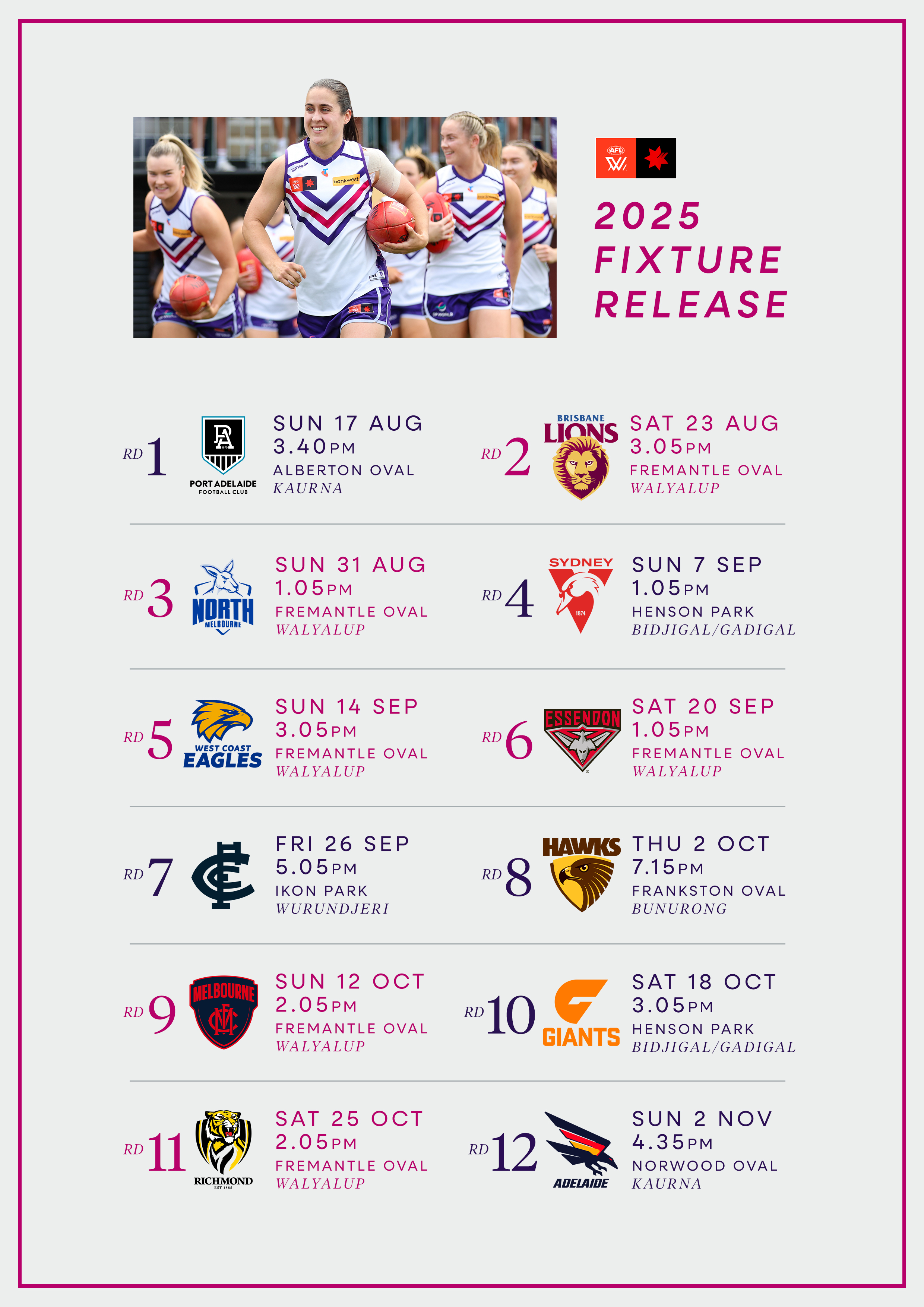 General Admission access to all Fremantle Dockers AFL Women's home AND away gamesMore info